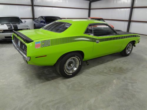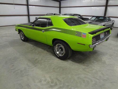 I WILL NOT SELL TO OVERSEAS BIDDERS ANYMORE You are bidding on a 1970 Cuda with no fender tag and no build sheet. Perfect car to restomod or turn into a big block. Solid floors and frame rails, you can drive as you fix this one up or use for a daily driver, starts every time on the first try. Probably would replace the lower quarters on both sides and a little patch here and there on the rockers other than that shes pretty dang solid. She drives straight and brakes well have taken her out on the road several times, I just decided to do a 71 Cuda instead. Possibilities are endless with this car, would like to do this one myself but I am downsizing my collection. The tires you see on the car will not come with the car they are going to be used with my 71 Cuda but I will put a set of rollers on there to ship the car. If you have any questions feel free to email me or if you prefer to call my number is (979) 436-4986 |