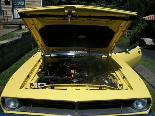 freshly rebuilt and restored all#s matching color correct cuda , you don't find to many of them like this one , high option car , all correct fender tags in place, no build sheet ever found in car ? there are just a couple of little issues to be addressed w/ this car to make it a 100% it needs 3 new dash lites, anew ignition switch a new turn signal cam and a new txv ( expantion valve for a/c) and a new brake switch, the dash clock is running but wont keep time? I may look into it But not high on short list of needs for car. this car is located in Lexington KY, it has been here its whole life, im owner #3, the previous owner is an old friend of mine has owned this car since 1982, he kept in his garage and took very good care of it. if you have any questions pls give a shout @ 859-684-7396 thanks for lookin and happy bidding, Dean