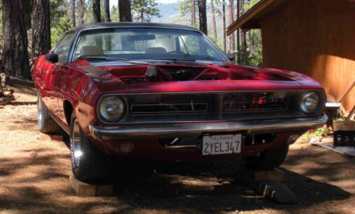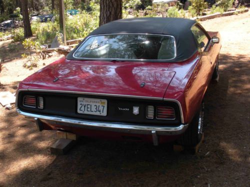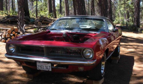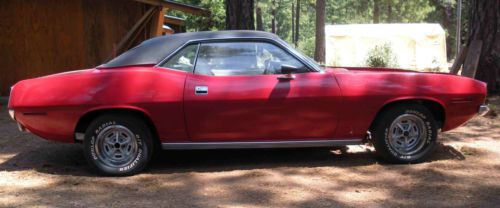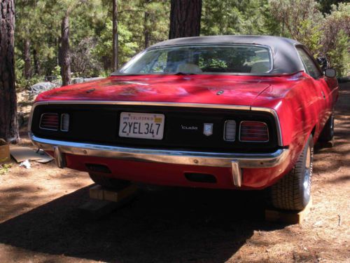 owned this car since the late 1980's. I did a semi restoration on it back then, and drove it for about 15 years. I started a full resto on it about 12 years ago and shelved the project in favor of moving and building a house. It is now close to being done but needs the engine and exhaust system completed, along with other additional finishing. Life changes tell me to unfortunately sell this jewel. After being a mechanic 30+ years ago, and restoring 5 cars and 2 boats over the years, it is time to reduce my projects. The body has never been hit hard. This is a solid car that is clean but of course 45 years old. It is a Gran coupe (premium model), and left the factory with extra trim, interior overhead consol & rear Wing. It was a 318 V8 automatic trans Barracuda and not a 'Cuda' which I believe were the factory hi performance models. It was made in Los Angeles California in september of 1969. This is a Chrysler E Body. All photos were taken in July of 2014. I have many more photos that I can email to any potential buyers. Feel free to email me with any questions too. I know this car very well of course after all these years. Not all parts are shown in the photos. I have lots of spares too from a parts car I had 20+ years ago. BODY: The red paint was done about 8 years ago. PPG Delstar with PPG Delglow Urethane clear. The paint is nice but certainly not excellent now. A bit of clearcoat frosting in a few small areas, and about 10 BB sized bumps just above the left rear wheel. The car was originally Hemi Orange, then reshot with the same color in the 80's, then red applied 8 years back. There were door dings etc that were smoothed with evercoat glaze. The car body has never been hit hard. The lower rear quarters behind the rear wheel were damaged with rust 25 years back when I bought the car. They were sandblasted from both sides (pinholes). This area seems to be the danger zone on these Cuda's. The paint is therefore not pretty in that lower 8" area. Repair panels are available for a complete repair. I believe that fiberglass reinforcement was added to the bottom of that area for stiffening. The 'Barracuda' & 'Grand Coupe' emblems I have but did not yet attach to the rear of the front fenders. The red paint is Alfa dark red. The paint has not been polished in 8 years, and it needs it. So it should shine up well. HOOD: I have yet to attach the hood to the car and will add a photo when have it mounted. The hood is matching red color top & bottom, and is the flat style and NOT the rallye type. It is in great condition, although the paint is not perfect, a bit of orange peel in part of it. It was never color sanded/polished after it was painted. RUST: There was rust in the trunk in the 80's, but a new trunk floor was installed (see 'trunk' section). An area about 2" x 7" under the battery tray mount was rusted back then too. It was sanded blasted from both sides and is rust free still. The battery tray basically covers that area of rough sandblasted metal anyway. A small area just above the left rear wheel has some bubbles. The metal appears very solid all around that area though. This was first noticed only a month ago. The metal on the inner side of this fender is smooth and completely solid, so I think these may be in the primer or in some sub primer glazing. The car is very solid and it appears I took care of the small amount of rust 25 years ago. Keeping the car in a carport or garage, and not driving on sand mud or salt also helped keep the rust away all these years. I also removed the seats and carpet a few weeks ago to photo the floors. The floors are still great. The trunk is also still nice where the trunk pan was replaced. The side area of the trunk compartment were sandblasted 25 years ago, they still look rough from the blasting, but the rust did not return. 71: the car has a 1971 Cuda front valance on it now. It is straighter than the original 1970 one (still have it too). The tail lights are also 1971, I have a pair of 1970 tail lights too that are also shown in one of the photos. TRIM: the bumpers are 45 years old, so they have some rough chrome and a few slight bends. The stainless steel trim is mostly great but needs polishing. I do have the two stainless steel trim pieces that attach to the door tops. They match the trim just behind them below the rear roll-up windows. That trim is part of the Gran Coupe package, probably an option on other cars as well. The glass is all great. TRUNK: This car came with a rear wing. This is the original trunk lid with the factory cutouts for mounting the wing/spoiler (see photo). I do not have the wing, the previous owner sold it a few days prior to me buying the car. The trunk floor had rust when I bought it. The rust did not go through the floor, but was bad enough that a new trunk pan was installed in the late 80's. The surrounding trunk area was sand- blasted from top and bottom also. ENGINE: The original engine was a 318 V8 that had already been replaced with another 318 when I bought the car. I have a 1972 440 that is ready to be reassembled and installed. So the winning bidder will have this task to do. I had removed the 318 and never finished the 440 replacement. The transmission is a TCI rebuilt 727. The 440 I bought used with about 5k miles since rebuild from a damaged vehicle. The hone marks are still visible in the bores. I have new rings & bearings, gaskets, oil pump etc for completion of the 440 (see photos). The engine block has been painted red (catylized heat resistant delstar) and has the crank, new bearings, oil pan and new cam installed. The cylinders and rod journals have been greased for protection. The engine is wrapped in plastic and bolted into the car for easier transporting. The block will need to be pulled and completed. I also have a new torque converter (performance high torque from Mancini??? - I'll check the brand). The heads should be cleaned and have the valves spun. VINYL TOP: Needs replacing obviously. I h