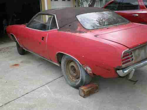 UP FOR AUCTION IS A 1970 PLYMOUTH BARRACUDA GRAND COUPE FACT 318 AUTO ON FLOOR FE5 PROJECT. THIS CAR WILL NEED TOTAL RESTORATION DOES NOT DRIVE, IT WILL NEED FENDERS HOOD, HEADER, VALANCES QUARTERS FLOOR PANS, TRUNK PAN , TRUNK DROPS , USABLE PARTS DOORS , ROCKERS, DECK LID IS SOLID TAIL PANEL IS SOLID, TAIL LIGHTS ARE NICE, NO INTERIOR PANELS NO STEERING COLUMN , NO GUAGES WHAT YOU SEE IS WHAT YOU GET , NO GRILL SOLD AS ROLLING BODY, VIN , COWL , DOOR TAG FENDER TAG ALL MATCH , COMES WITH BILL OF SALE PREV OWNER HAS FILED FOR LOST TITLE IN SC IT WILL GO TO WHOEVER GET THE CAR , I DONT KNOW WHEN OR HOW LONG IT WILL TAKE. SOLD AS IS , THE FRAME RAILS ARE SOLID FRONT TO BACK . THIS CAR IS VERY BUILDABLE , MAKE IT WHAT YOU WANT TO MAKE IT. CLONE IT TO A 71 OR GO BACK TO 70 . I HAVE BEEN SELLING THESE CARS FOR OVER 15 YEARS THEY DONT LAST LONG . MY PRICE IS VERY FAIR FOR THIS PROJECT NEEDING MAJOR PANEL REPAIR . I DO HAVE A LOCAL SHOP THAT CAN DO ALL THE METAL WORK . RESERVE IS SET LOW RESERVE THE RIGHT TO END THE AUCTION EARLY... CALL 727 389 4283 TO DISCUSS THE CUDA FENDER TAG PIC IS POSTED.
