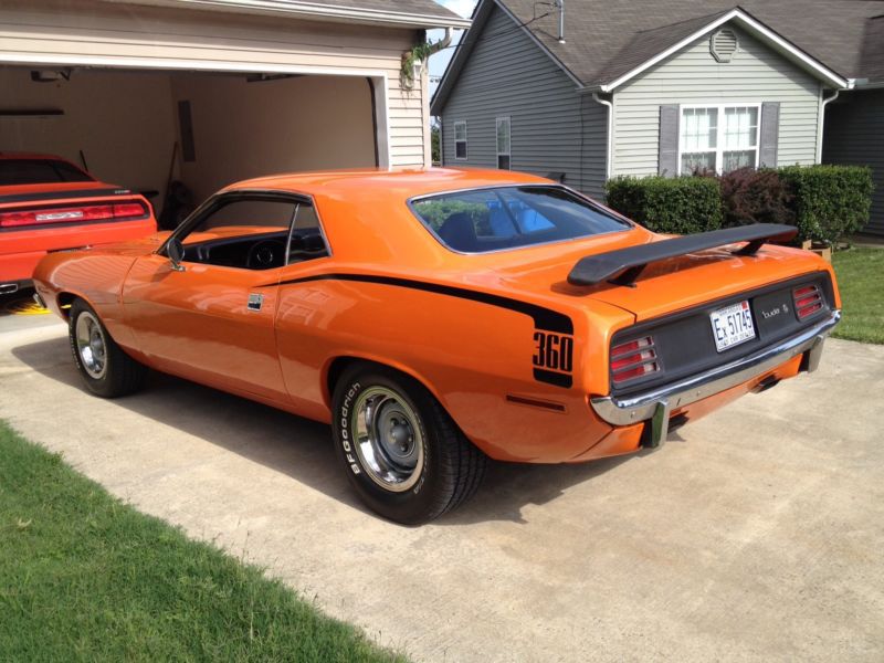 pieces. Dyno shows 355 to the ground. Head turning 1972 Plymouth Barracuda. Beautiful vitamin C orange paint.
