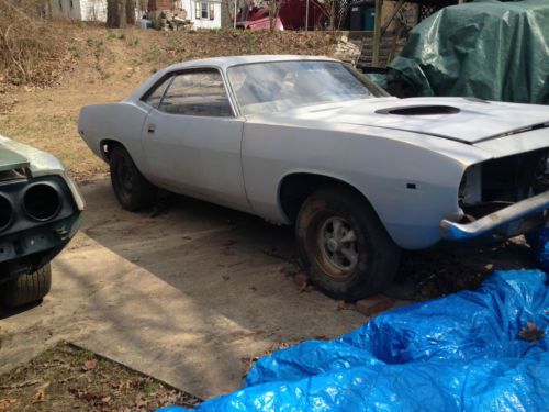 1972 Barracuda project. Rolling chassis, have title, original 318 car, solid original floors new rear quarters, fiberglass fenders. Solid car in primer. All major metal replaced, still needs small amount of work. Has all the original glass, some trim parts, no motor