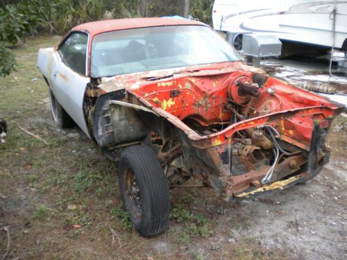 1973 CUDA FOR SALE. ORIGINALLY A 340 , AUTOMATIC CAR WITH A/C, POWER BRAKES. THE DASH IS BLACK WITH 3 SPEAKERS. PARTS THAT I HAVE THAT WILL GO WITH CAR: HOOD(SCOOPS),2 SETS OF FRONT FENDERS, A/C HEATER CASE, FIBERGLASS DECK LID, UPPER FENDER REPAIR PANELS, BOTHSIDES REAR, INTERIOR STRUCTURE SAIL PANEL FOR REPAIR, REAR SEATS, FRONT SEATS AND TRACKS-NOT MATCHING TO CAR, CENTER CONSOLE WITH SHIFTER AND LINKAGE, 727 TRANS(OPERATING CONDITION UNKNOWN), STEERING COLUMN WITH WHEEL, ADAPTER, AND HARNESS, RALLEY RIMS WITH CENTERS AND RINGS(VERY GOOD SHAPE), 2 GOOD TIRES, 2 SETS OF DOORS WITH GLASS AND REGULATORS, 1 PASSENGER SIDE DOOR PANEL BLACK AND 2 DOOR PANELS THAT WERE PAINTED WHITE, 2 CUDA RADIATORS, REAR AXLE 2:76 GEAR WITH 11 INCH BRAKES AND IS NOT ORIGINAL. I ALSO HAVE WIPER MOTOR AND LINKAGE, PART OF A WIRE HARNESS( UNKNOWN WHICH ONE), ASH TRAY AND BRACKET, AND SOME MISC. INTERIOR AND BODY PIECES AS WELL. IF THERE ARE ANY PARTS THAT I HAVE FORGOTTEN TO LIST, THEY WILL GO WITH THE CAR AS WELL. NO ENGINE, NO DRIVE SHAFT. NEED $500 DOWN AT THE CLOSE OF THE AUCTION BY PAYPAL. SALE MUST BE COMPLETE IN 7 DAYS. FLORIDA RESIDENTS BE PREPARED TO TITLE VEHICLE. I TAKE MASTERCARD AND VISA. THIS CAR IS VERY RUSTY AND WILL NEED SOMEONE WHO WILL KNOW HOW TO PUT IT TOGETHER. IF YOU NEED MORE PICTURES, I CAN SEND THEM. PLEASE ASK QUESTIONS BEFORE BIDDING. 239-529-5467. LEAVE MESSAGE IF NO ANSWER. BUYER RESPONSIBLE FOR SHIPPING. |