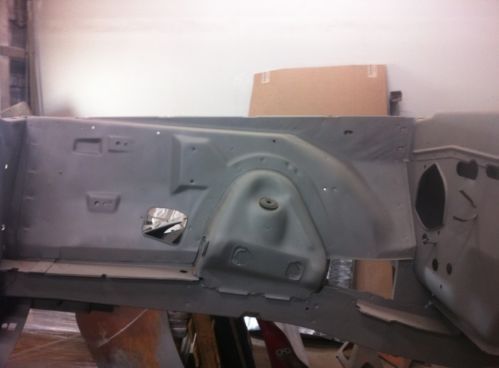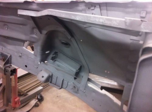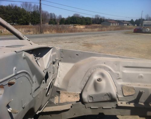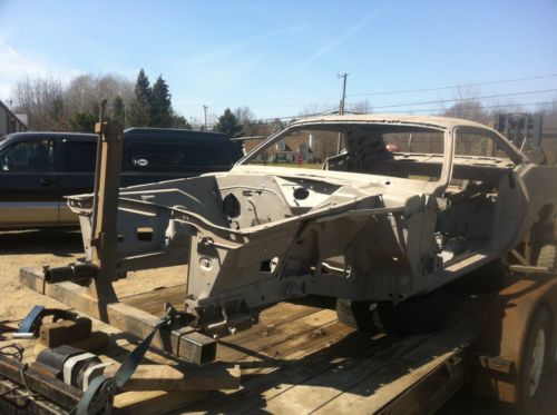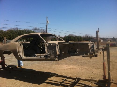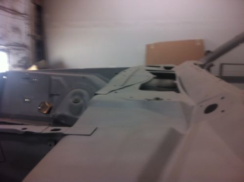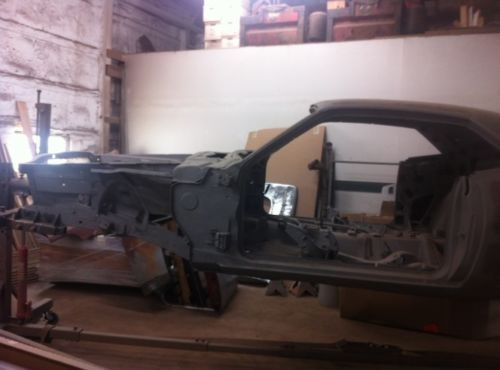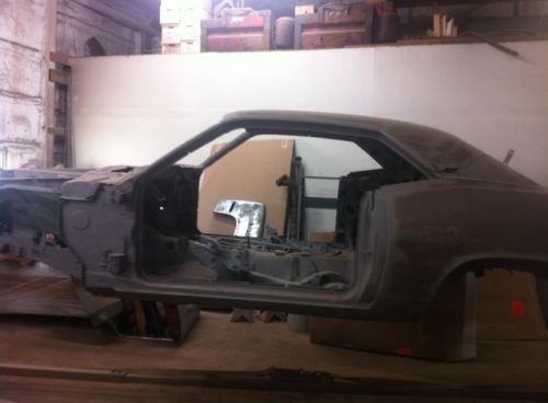 True 1970 cuda body shell for sale. Body shell was 100% bead-blasted and 1st coat of epoxy applied. Bead-blasted COMPLETED – two doors, front fenders, hood, body, K-frame and torsion bars. INCLUDED: $6,000 worth of new high-end AMD panels included for application, ready to be finished.