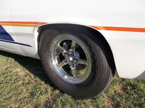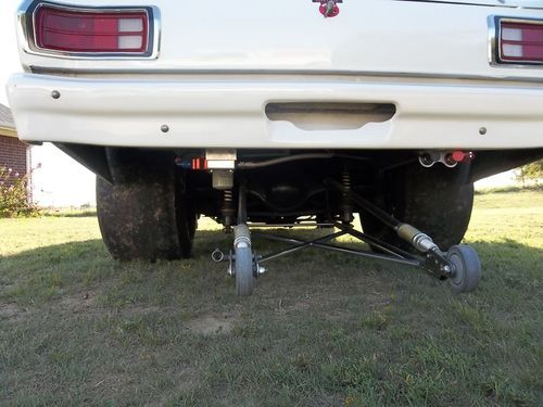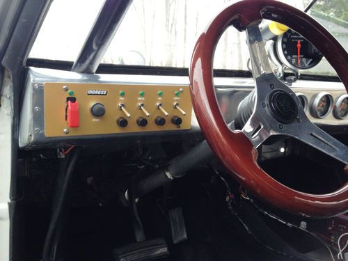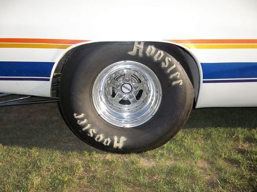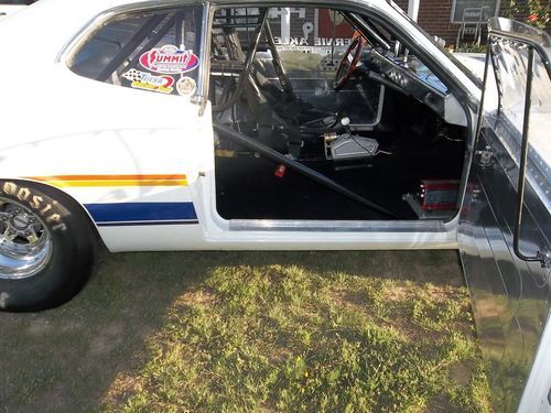 Car sports a show quality paint job and is very straight. All steel except hood, trunk lid, and bumpers. Plexy is spotless. Very nice tin work with removable inner fenders. Motor and trans freshened last season. This car launches straight and hard and runs easy 9.70s in the 1/4 mile. Car weighs 2550 pounds without driver. I have a clear title and with some work, could be put back on the street.