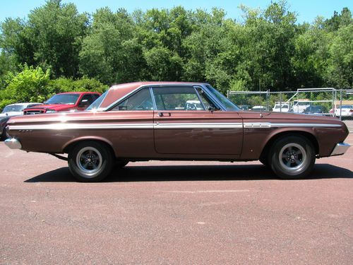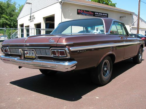 Fuzzy Dice Auto Sales has a fantastic 64' Plymouth Fury Street Wedge car that is a true survivor. This original 426ci / 4-speed car was bought brand new by it's current owner who put the majority of it's incredibly low 38,000 miles on the car back in the 60's. Since then the car has been kept in a climate controlled garage and consistantly maintained and periodically driven just enough to prevent any of the problems you sometimes find in cars left unattended for years. At the time he ordered this beauty the owner claims the paint swatch (the little color squares in catalog) for this Chestnut Metallic color looked nothing like the actual car itself would appear. In fact the paint swatch was found to be quite ugly by most and therefore very few were ordered in this color making it a very rare combination today! A Plymouth employed friend of his explained to him just how different the color would be on the actual car as opposed to the swatch and luckily convinced him to order it. The car arrived exactly how his friend had described it, so he now owns a rare colored Fury Wedge that looks beautiful in all lighting! The car came equipped with steel wheels and hubcaps that he quickly replaced with the wheels pictured below back in 65'. He still has the original hubcaps which will be included with the sale of the car. After being photographed the car now has brand new radial tires on it, but again he kept and will include the tires pictured below as well. These 426 Wedge motor Furys are few and far between so this is your chance to own one all original at a fantastic price. Please read thru the descriptive list below for more facts on this car and if you have any additional questions please feel free to ask!