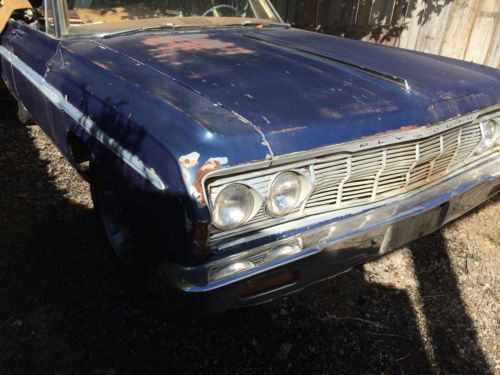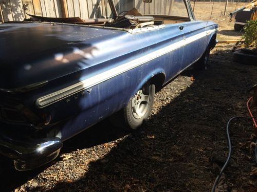 This auction is for a 1964 Plymouth Fury Convertible project car. It has a 413 cu in engine in it , not connected, the motor turns but is in unknown condition. The car was originally a 318 V8 car and the engine in it is from a 1964 Imperial include a push button drive 727 transmission. The car has some rust in the usually places around the rear fender wells and lower front fenders, the floor also need some at least partial floor pans in the back floor and on the passenger front. No interior, but I do have a front bench I could include, the rear interior panels specific to a convertible are there. The trunk floor is borderline, but could be used or just the center part replaced. I have a clean California title. I can deliver locally around the SF bay area. The top mechanism is all there, the bows and headers and the hydraulic pump and rams. It is a project and would take some work, but would be a valuable good looking car when completed.