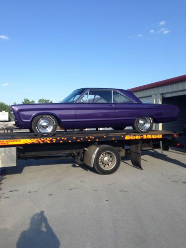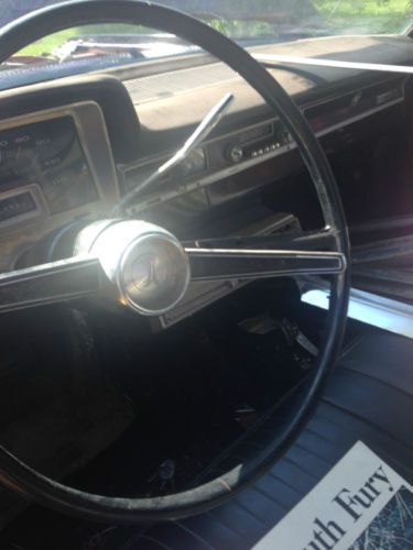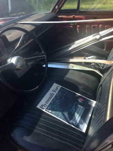 1965 Fury lll Hard Top, 318 V 8. Runs. Was A daily Driver until a couple years ago. New Paint. 95% of Trim. There is a rust spot in the trunk that has rusted through. It looks like a greasy rag laid there for a long time. Rest of trunk looks ok.Glass is good. Nice looking Car.All this car needs is the chrome and bumpers put back on.It runs great.A good mechanic can have it on the road in a few hours.I am a woman and not sure how to do it.It is a straight body that really looks nice.I have the purple insert material for the seats. The Radio Antenna is all I know that we don't have. It was painted in Feb. and my son had to leave before he could finish.