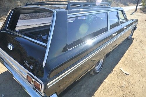 I have been the proud owner of this 1965 Plymouth Fury III Wagon since 1997. I have kept nearly all service history and backup receipts from the 16 years we have been together and will include all of this paperwork with the car in a binder. The car has many new features including a big block 440 HP engine I put under the hood one year ago. The 440 which was put into my wagon only had 50k miles on it and it runs strong and fast. The torque on this car is very forceful! I have added new chrome bumpers on the front and back, new mirror and a gorgeous new black paint job. I have taken off the automatic tree shifter and added a Hurst Dual Gate shifter in the center column, which is very cool. The car has all it's trim in all the right places, the headliner is in fine shape. The engine is quite clean as you can see from the photos. It does like a 5 minute warm up period in the morning before hitting the streets, but once warm, it's consistently ready for duty. It's quite simply the best looking and best running sport wagon in Los Angeles, hands down! The back window is electric, controlled from the dashboard, which is convenient for groceries or loading packages. There is a subwoofer in the back bottom well of the car. The back seat folds down to extend the bed in back. I've comfortably camped in this car after being "rained out" at campgrounds. I am a photographer/film director and this has been a great car over the years for loading photo gear for dozens of shoots. This car has been seen in Tommy Lee photo shoots as well as in Cypress Hill's "Whats Your Name, Whats Your Number?" music video, please UTube it and see the car featured many times in the clip! The two things this car needs that come to mind are as follows 1. The air conditioning/heater needs attention, I can remember once upon a time it would rival a modern day car and became such an icebox, but any mechanic can handle the job. 2. The speedometer does not work, this should not be too big of a fix it project. The door speakers are missing their covers.