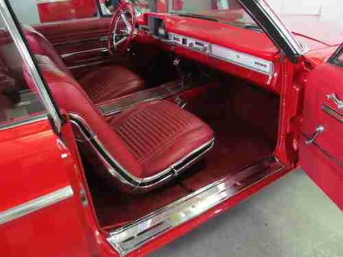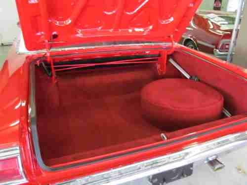 This 1966 Plymouth Sport Fury Convertible is a California car that has had a body-on restoration. The car sports bright red paint and a white convertible top. It has red metallic vinyl bucket seats with white trim. It is equipped with a 383 CI V8 Commando engine, 3-speed automatic transmission, power steering, power front disc brakes, power top, AM radio, tinted window, America Racing 5 spoke wheels. The owner's manual and sales literature come with the car.