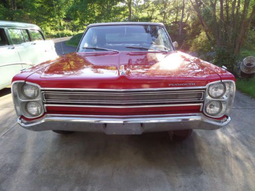 1968 Plymouth FuryIII Convertible that is a running, driving, and stopping car, that has a straight, and solid southern body...very nice paint in bright red, with a very nice grained vinyl convertible top...decent driver chrome, new Magnum 5oo chrome wheels, with new 15" thin whitewall tires that are authentic to the year...powered by a 318 cu.in. V8, w/2bbl. carb, and a three speed Torqueflite automatic transmission , it has plenty of power, and also delivers decent fuel economy...the interior was redone in red and white vinyl with new red carpets, and is quite the head turner...Nothing says summer like a red convertible!!...the power top works well...an aftermarket AM/FM/CD radio of good quality, with new speakers was installed before I got the car, but it plays well, and sounds good, so I left it in the car, as the original AM radio is in the car but does not play...this car has power steering, and brakes, and is very comfortable to drive...it needs nothing to drive and enjoy!! For more information on this car, you are welcome to call Lou at 814 414-9232.