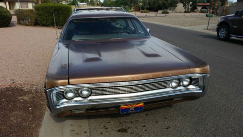 Up for auction is a 1970 Plymouth Fury Suburban station wagon. Very solid southwest car, runs and drives fine. 318 two barrell, 727 torqueflite with what I think is an 8 3/4 rear axle. Power rear window works and tailgate drops down and also swings like a barn door. Car is equipped with an aluminum radiator. Other than the radiator car is very original. Very cool hood on this vehicle. No cracks in any windows. Tires are in great shape, good driver. Load up the family and head to Wally World!!