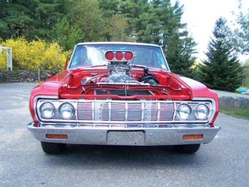 The car was 383 four speed from factory with 83/4 rear red white paint from oregon. It now has 1970 hp block blown 440 with aluminum heads,billet blower from the blower shop,dual demon carbs over 20000 dollars in engine. Dino tested around 750 horsepower. It has a functional scoop. The radiator was custom built by griffen for over 1000 dollars. It also has an oil e-vac system with stainless braided lines. The fuel pump is magna electric with stainless braided lines. The exhaust is 2 and half inch tti with nickel coated headers. I used a lakewood blowshield bell housing for safety. The tranny is a 5 speed tremic made to withstand the horsepower. the rear end is brand new dana with 354 gears. The brake system is 4 wheel power disc. Super stock springs in rear. Every thing is new in the car, brakes,lines,tie rods,drive shaft,bearings,bushings, ball joints,windshield,weather stripping, legendary seats,foam,door panels,carpet, headliner,dash pad,wheels, tires,bumpers,interior chrome,liquid filled gauges i also added a second fuse box for the fuel pump water pump and fan.I have the hood painted but not cut for blower, and i also have original drive train to be sold separate, I did not alter the car, so if you wanted to go back to original you can.The car was built by me for me so i did not spare any expense.I put maybe 600 miles on it and got busy with other projects and just don't have time for it.It is stored in a heated garage and paid for. I have over 60000 dollars in car that i kept track of plus all my time, i was asking 50000 but any reasonable offer will be considered Sorry the pics do not show how nice the car really is.Call for more pics or questions 978-874-5278 ask for Bob and thanks for looking |