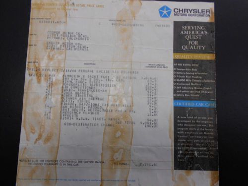 1966 Plymouth Sport Fury. Only 3 adult owners and ONLY 65,460 ORIGINAL MILES. All new car docs: including MSRP, original purchase order, showroom handouts etc. Powered by a 383 V8, driven be by a Torqueflite automatic transmission, factory air conditioning, Power steering and brakes, factory vinyl top, 500 alloys and more. Original color was Citron Gold now Crimson Red with Black bucket seats and center console. Original radio and up dated CD under dash. No cracks, dash pad perfect. This car drives perfect very smooth and powerfull. Rust free California car first delivered in Hayward Ca. and never left, even original Black and Gold California plates. #285150. Now on display at the home of “over the top cars” CHECKERED FLAG CLASSICS 7743 MONTEREY ST. GILROY 408-847-8788, sold as-is, California buyers are responsible for sales tax and license fees. Bid with confidence I am a licensed bonded California dealer. This American classic is for sale locally therefore the auction can end at any time.