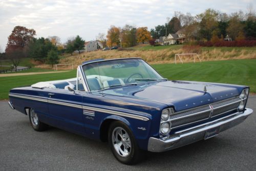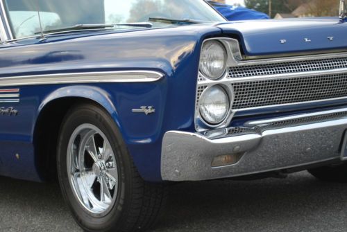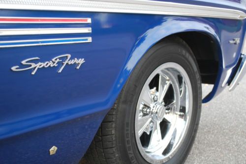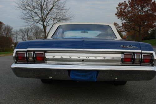 1965 Plymouth Sport Fury Convertible 383 4bbl, 3 speed automatic on floor with console. Car is a Mega Mopar Series winner and National Chrysler Series winner and numerous local show winner. Features include original type two tone front and rear seats, dark blue carpet, and pure white top and clear back glass. Convertible top works very well and parade boot also included. New 15 inch new style Crager wheels and tires. Car runs and drives extremely well and transmission shifts very well. Engine uses no oil. Car has classic tags so pa inspection done yearly. Brakes and suspension fine. All lights, gauges work. Undercarriage still displays original undercoating and all pans and floors solid. Car is and always garage kept. Bumpers and exterior and interior trim in very good condition.
