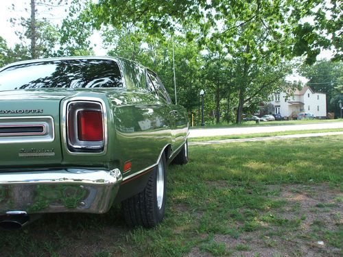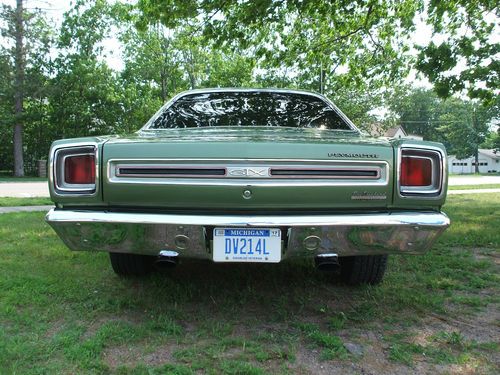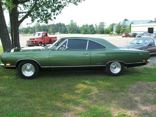 I am listing this beautiful numbers matching 69 GTX for its third private owner who has decided to part with it. The car was sold new at Ray Sheperd Motors in Fort Scott Kansas. It has had three adult owners since new. It has 71,00 original miles. The body retains all of its original panels, straight and damage free since new. The car has had one professional repaint in its original color. There is one small crack in the paint on top of the right front fender in front of the windshield and some very light chips by the rear tailights that are barely visible. There was one small 2in by 2in rust repair done down low on the drivers side quarter in front of the wheel opening where water leaking at the rear quarter window had allowed water to settle. It was cut out and repaired with new metal. There is no rust or rot anywhere else on the car. The exterior chrome has been replated and is beautiful and damage free. The motor is the original #s matching 375hp 440 which was completely and professionally rebuilt. There have been no modifications done to the motor except for a Direct Connection electronic ignition conversion and a set of chrome valve covers. It retains all of its original components including the Carter AVS 4 barrel carb. It runs smooth and strong and sounds like a Mopar should. The original 3 spd column shifted automatic trans is smooth and tight and works perfectly. The rear end is the original 8-3/4 with 3:55 gears.. The brakes are manual drum and work pefectly. The undercarriage is clean and original .  The car currently has new Dayton Daytona radial tires mounted on aluminum American racing rims. The factory rally wheels with redline tires are also included with the car. Inside the dash is original, uncut and nice.  Original radio works and it has an fm radio mounted under the dash and a cd player and power booster mounted in the trunk.  It also has a high end Python theft security system installed. The current owner had the original seats and door panels redone in two tone 100% leather and had a new headliner installed. The carpet looks like new,       I have tried to describe the car the best I can but am sure I left something out so feel free to ask for additional info or if you would like to speak to the owner directly just ask and I will provide his contact information. All in all this is a very nice GTX that has been cherished by all of its previous owners and can be driven or shown anywhere with confidence. Thanks for looking.