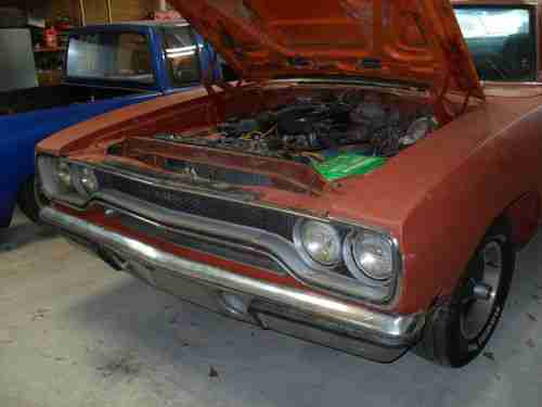 i bought this car few mouth ago from a guy in conn he said he had it while but the car came from arizona it isnt a rust bucket . not saying there isnt some rust but nothing real bad . guess my real resson for selling is i want a 4speed car either a gtx or roadrunner this car is all there in a automatic if it doesnt bring what looking for ill cut the floor and put a 4 speed tunnel in would like to stay to the build codes if your going to put the time in it for the values. the shiping on the buyer and 500.00 at the end of auction and final payment on pick up have any question call 813 326 1043 tony the floor in truck has been replace no gas tank put a gas can in trunk with fuel pump to move car around motor run litle rough tanny needs rebulit but can move car around floors in car are good but driver side has a spot in it where wental is thin 3 by3 me would out new pan in hood is good frount fenders good doors so so have little rust and dents rear quarters need lowers and right trunk extenion around windows look good it is it original paint so you can see in pictures what there. do have build sheet and fender tag