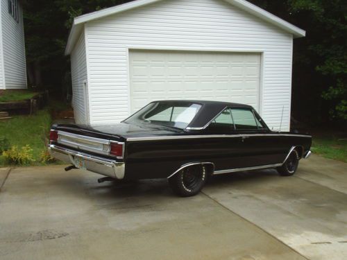 Beautiful triple black car , 383 automatic , bucket seats , console w/ floor shift . Complete reupholstered interior , new vinyl top , nice paint , fresh tires new disc brakes and rear brakes , rebuilt engine and transmission with about 100 miles since build . has headers and dual exhaust . All brand new weatherstripping and trunk mat . Has the gtx gas cap .you have to install radio and hook up the lights . ITs a real beauty SOLD AS IS , NO RETURNS