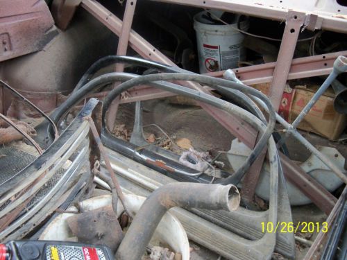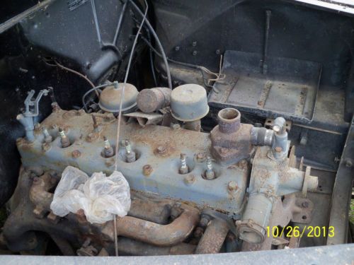 We had just pulled it out of the barn when the photos were made, which is why it is so dusty in the photos. The Bad: It will need an interior, and new glass. There is a part of the floor missing that covers the transmission. The tires are shot. The Good: The body and paint job are actually quite good, apparently primer was used, as there are currently only one or two small bubbles that I could see. The seats are not in the pictures but are stored nearby, and will go with the car. Other than the items mentioned the car is 95% complete: the interior window frames and brightwork are there, as well as all 4 hubcaps. The running gear is all there. Would be a good restoration candidate, or put a big engine in it and have a rat rod! |