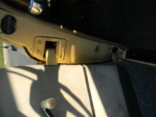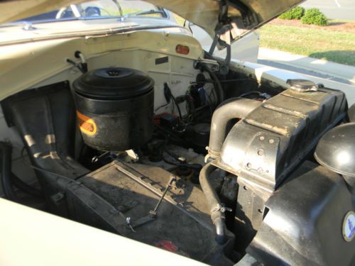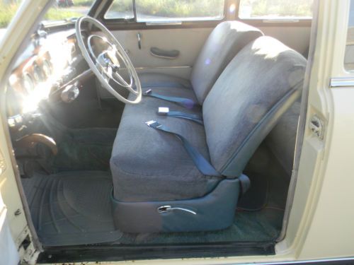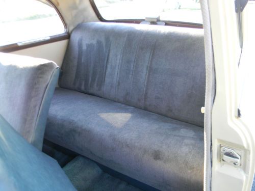 The interior is complete, without any rips. The seats, armrests, and carpet are navy blue. The door panels and headliner are white. There is some stains. All headlights, turn signals and brake lights work. Also has a courtesy light when the passenger door is opened. From what I can tell its all original metal, and one very small patch was done in the floors near the driver floor the firewall. The paint is old, and looks good 5 feet away. Contact: