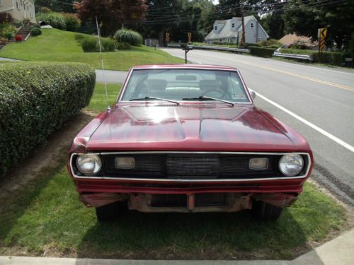 1971- Plymouth Scamp- 318 cubic inch/ auto/ new fuel pump,gas tank, carb. Red exterior/ white interior, no front or rear bumpers right front bumper damage otherwise in good shape