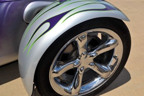This is a beautiful example of the Plymouth Prowler with some mild customization to separate it from the others. A great flame paint job, rear bumpers painted, front bumpers removed and smooth covers with park lights installed over front suspension. Also has a custom exhaust system that sounds awesome! I replaced the run flats with a new set of Continentals. Everything is working on this car. Top is in great shape. I personally own a Prowler and bought this one just to sell at the dealership. The new tires give it a great ride and I assume its the exhaust makes it a real runner. It's really a very nice car! Being for sale at the dealership, Mears Mazda/Volvo, could end the ebay sale early without warning.
