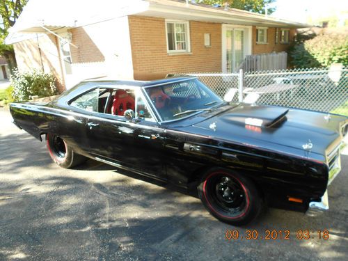 The item you are bidding on is a 1969 Plymouth Road Runner Hard Top (RM23 vin code). Real Road Runner. The engine is 440 Six BBL. 906 Heads. MSD ignition. Full Roller motor. Hemi 4 Speed with Vgate inline 4 Speed shifter. Dana 60 Rear-end. E-Body front adjustable suspension, E-Body front disc brakes. Rear suspension is a rear ladder bar/coil over set up with a Strange spool. 3 way adjustable front shocks and alden coil over double eagle rear shocks. The block is stamped 1968. The heads are ported and polished. Car is pushing 650 plus horse, carberated. The car has a 6 -Pack Fiberglass lift-off hood that is a factory Chrysler hood that is not a reproduction. The car was featured in Mopar Muscle Magazine in November of 2002. The car also comes with an indoor/outdoor car cover along with the hood poles to lift off the hood for show. Has original exhaust tips. Car is street driven and is also legal on the track where it ran a 10.97. With a good set of track tires it should run 10.30's but is still driven on the street. Way too much more to list. Can call for more details, 937*572-7073. The car starts and runs and is drivable bit needs a cam and lifters. You can go to my Facebook page and get more pics and a video clip of how it sounds. It is listed under pictures and albums. Car is priced to sell, letting it go for very cheap. The car has been completely diagrammed from front to rear and diagrams come with the car. Will only accept cash or cashiers check and buyer is responsible for all fees and pick up and delivery. When driving this Mopar on the streets people stop and stare and do not know what to think, it is Mind Blowing.