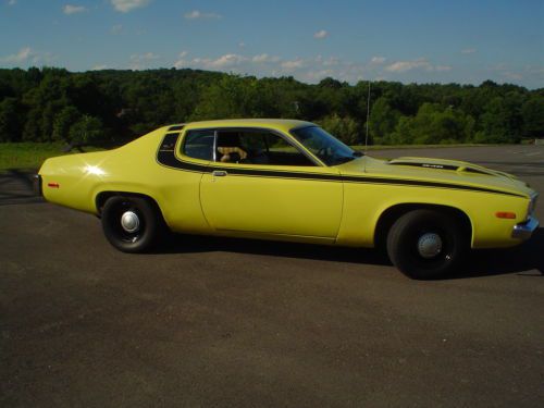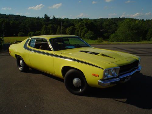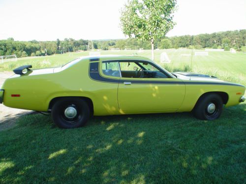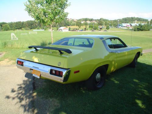 including the beep beep horn! Most classic enthusiasts agree that 73 was the last year of the true muscle era, so here's your chance to own an affordable piece of Classic Mopar Muscle. These fuselage body Mopar's are gaining in popularity and the investment values are increasing too. Unfortunately I don't know a lot about the history of this car, but I can tell you it runs great, sounds great, and turns a lot of heads. Not a trailer queen by any means, but it's a nice driver quality car that can be enjoyed and driven today. PA inspection was just done in June, 2014. I would say the paint is a 7 out of 10, with a few minor chips and blemishes. But it looks nice from 15 ft, and certainly gets a lot of thumbs up driving down the road. Interior is very clean, and there are no tears in the upholstery or cracks in the dash. Good tread on the tires, and the dog-dish hubs give it a nice mean look! Engine bay is also clean. I believe the motor to be the original 318 CID. The photos should give you a good indication of this cars condition, but I'll be more than happy to answer any specific questions. Please call at 724-561-9355 if you have any....I'll do my best to answer specifics. Please don't ask me what the reserve is. This car can be driven confidently today, and for the overall condition you'll have a tough time finding a better classic mopar for the money. Bid with confidence, and good luck!