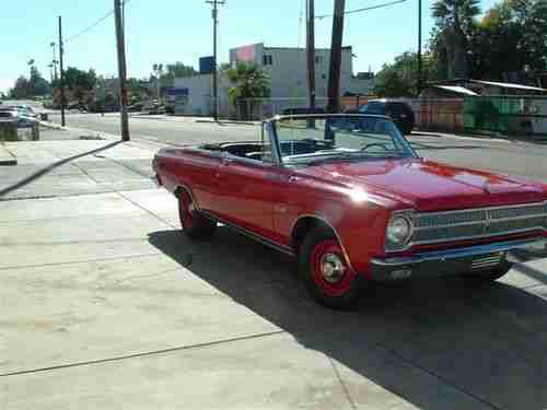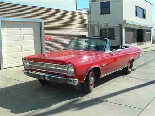 I'm listing this car for a friend. Spring is just around the corner ! Up for your consideration is a Great example of a 1965 Plymouth Satellite Convertable. This car is NOW equipped with a 426 street wedge engine. It has two Edelbrock 4 barrel carbs. on a Edelbrock inline 2X4 intake manifold. The engine has a solid lifter cam with adjustable rockers, and uses a MSD Pro Billit " ready to run iginition". Mopar Performance Black wrinkle valve covers look good and work well. Also included are March serpentine pullies and belts. Details on the drivetrain can be explained by calling the number in the ad. Just too much to list in that catagory. The body is a California rust free example of what a car should like like. A rock solid body with great trim and Beautiful chrome. Fresh top and interior add to the overall appearence of the car. Again, too much to list . Please call with any questions you may have. 858-414-6972 One would have a Hard time finding a car in better condition. Thanks for looking !!