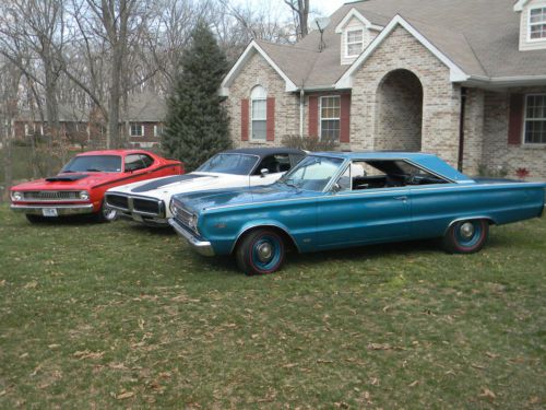 here is your chance to buy a 66 hemi satellite that has just been painted 3 weeks ago(8k in body work and paint)- this car is as straight as you will find,it was dipped and sealed years ago- rotisserie restoration was in process until today as im sick and tired of my lovely bride complaining about my cars. I have tons and tons of 66 satellite parts that go with it-66 donor car also-- 66 hemi block-4 speed tranny(rebuilt) 8 3/4 3 55 are in it-brand new front end/bushings-painted steelies-red lines-hemi k frame- new gas tank(installed)stainless fuel lines ( installed) carbs-intake(dual carbs) brand new black valve covers-chrome 426 air cleaner- tons and tons of parts-doors-hoods-grills-tail lights-emblems-dash-consols.... new carpet-new front seat covers-new floor mats---pics will tell the story- you could build 3 cars with all the stuff I have collected over the years-im tired of hearing about it. this car will be beautiful when put together.i have pics of my other 66 hemi cars . send email and ask questions 314 680 4820- I really did not plan on selling this car before it was completed as I have 2 other cars to drive and could take as long as I wanted to make this car perfect but the bride does not want the garage space taken up for years and me putting money into another car is pissing her off and now im there so let it go.thanks and good luck (THE WHITE CAR IN THE FIELD IS A DONOR CAR-THE WHITE CAR THAT IS COMPLETE IS ONE THAT IS ALREADY DONE BUT IS AUTO AND RED INTERIOR-THE PICS ON THE LIFT IS THE STAGE THIS CAR IS NOW- THE 66 HEMI BLOCK IS THE BARE SHORT BLOCK ALONE()GOOD BLOCK) THANKS
