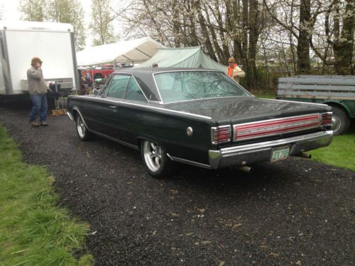 1966 plymouth satellite, Dark green with black interior, 69000 mile showing (I don't know if it is correct, but the seats,carpet,dash,ect. make me think its original) 361 v-8 automatic, center console, factory buckets, no rips or tears, factory air conditioning (works, but is not blowing cold) newer paint, fresh stock engine, power brakes, power steering, a very nice driving/looking car. the car needs/ could use the following: seat belts are faded in color, the rear driver side wheel chrome molding is bent up, all the chrome on the car looks good, but is not new or restored, it is original 1966, there is a heat probe in the heating system that is bad, (the heat works, but you can't adjust the temp) I am just trying to be clear that this a nice looking driving cruiser that is not a new car, I welcome you to come and look at it anytime before you bid, I have stated everything I see wrong with the car, but again, please come and look yourself, I do not accept paypal, I am not providing a warranty, I just don't have room for it, and I want a smooth transaction. call with questions, Mike 503-310-8708