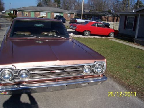 Up for auction is a 67 Plymouth Satellite. The car has a new paint job and is a nice fun driver. The engine is a 340 built by TNT performance makes 400hp has 10.5 to 1 pistons with custom grind engle cam, sounds good. This is #s matching engine to a 70 rt challenger and I know where the car is if anyone is interested. The interior is nice exept for the drivers seat is ripped and needs redone. It is a rock solid car with that is in overall sound condition. Look over pics and please call me for any questions. I took this car in on trade and will tell you all details I can please call me at 812-530-7384