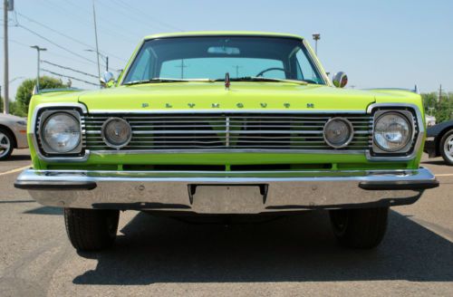HERE IS A 1966 PLYMOUTH SATELLITE COUPE. THE CAR IS EQUIPED WITH A FRESH 440 CI MOTOR AND ALUMINUM INTAKE WITH HOLLY CARB. THE TRANSMISSION IS A 727 AUTOMATIC. THE CARS EXTERIOR IS IN GREAT SHAPE WITH NEW PAINT . THE COLOR IS LIME GREEN. ALL ACCENT TRIM ON THE VEHICLE IS IN NICE SHAPE AND SETS THE CAR OFF GREAT. THE INTERIOR IS IN SUPER SHAPE HAVING NEW SEATS,CARPET,HEADLINER AND MUCH MORE. IT HAS A FACTORY FLOOR SHIFT WITH CONSOLE. WE HAVE GONE OVER THE CAR AND REPLACED THE EXHAUST FROM THE HEADERS ALL THE BACK WITH FLOW MASTER EXHAUST. THE CAR RUNS AND DRIVES PERFECT IN EVERYWAY. THE BRAKES HAVE BEEN REPLACED ALONG WITH THE WHEEL CYLINDERS. THE CAR IS NOT A NUMBER MATCHING CAR BUT HAS PERIOD CORRECT DRIVE TRAIN. THIS IS A CAR THAT STARTS RIGHT UP AND IS READY TO BE ENJOYED BY THE FAMILY. A PERFECT CRUISER IN EVERY SENSE OF THE WORD. WE HERE AT LRA AUTO MUSEUM AND SALES ARE PROUD TO OFFER THIS 1966 SATELLITE TO THE PUBLIC. THIS WILL BE A NO RESERVE AUCTION SO HIGH BID WINS THE CAR. PLEASE REALLY TAKE A CLOSE LOOK AT THE PICTURES BECAUSE IT TRULY IS A GREAT LOOKING CAR. PLEASE CHECK OUT OUR OTHER MUSEUM CARS BY VISITING LRA AUTO SALES ON THE INTERNET. ANY QUESTIONS YOU MAY HAVE PLEASE CALL 267-475-4000. THANKS FOR LOOKING . BILL |