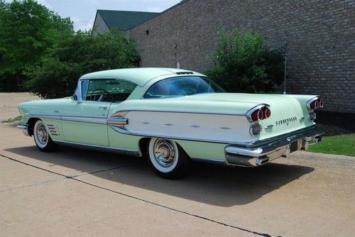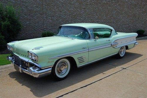 1958 was the high point of chrome for GM, and this Bonneville was the "chromiest" Pontiac money could buy! Powered by a 370ci Tri Power engine and gorgeous from nose to tail and with AACA national awards this is one of the finest ’58 Pontiacs left on the planet! A name badge that was with us for over 50 years, the Pontiac Bonneville started life a s a concept car for the 1954 GM Motorama, GM’s traveling view into the future of car design. A Bonny for the public went on sale in 1957 in the form of 630 very expensive, fully loaded convertibles as a trim package. 1958 Marked both the start of the Bonneville as an independent model and GM’s 50th anniversary, where Harley Earl’s styling studio was let loose to do as they pleased, no matter the excess. The result was a complete retooling for a single year’s worth of cars across the board and the most chrome and trim ever seen on any cars, ever.