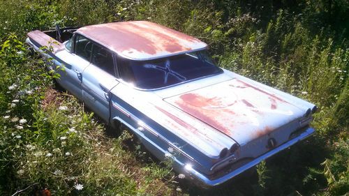 This is a 1960 Pontiac Bonneville, It does not run it does not have a hood. the engine is there as is all the other drivetrain but I DO NOT know the condition it is in. I can tell you though that the body is in very good shape . I tried to take a lot of pictures to show the condition . I didn't see any rust even in the floor pans they are solid. all the doors open and close good. The interior looks in good shape also . please look at the pictures and judge for yourself . it seems to be a real solid old car. looks like any easy builder to me. it is for sale locally also so I will end the auction if it sells locally. I have the reserve set at a $1000 bux as it will bring almost that for scrap but I hate to see such a beautiful car scraped. If you have any questions call or text Ken 573-330-2912