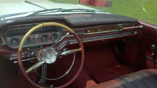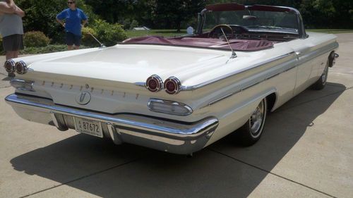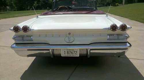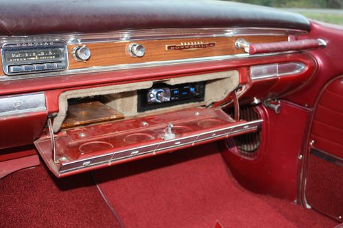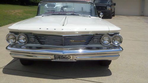 Here we have a Real Classic 1960 Pontiac Bonneville Convertible. This car has a 389 Engine 4 barrel carb and a Turbo-Glide Automatic Transmission. It has Power Steering, Power Brakes, Power Convertible Top. It has a Super Clean original Interior and Newer base Coat Clear Coat Paint. All Bumpers have been redone and look better than new. All the Exterior Trim is in excellent condition. The Interior is in perfect condition. The Speedometer says 44,000 but I am selling it as Mileage Unknown. It has the original Radio in the dash but also has a Custom AM/FM CD Player Stereo in the Glove Box. It has The Correct New 8 lug Wheels including the Spare and they have New White Wall Tires.The Frame and Floor Pans are Solid No Rust. This Car is a Great Driver. I drove it to the Hot Rod Reunion in Bowling Green KY. last weekend. All gauges work except for the factory clock. It sits up and the road and gets Tons of Attention. Please feel free to call me if you have any questions. I have not checked the numbers on the engine to see if it is Numbers Matching.