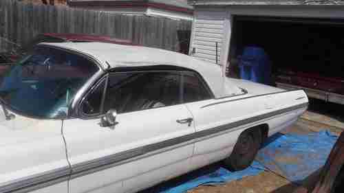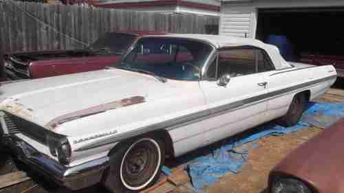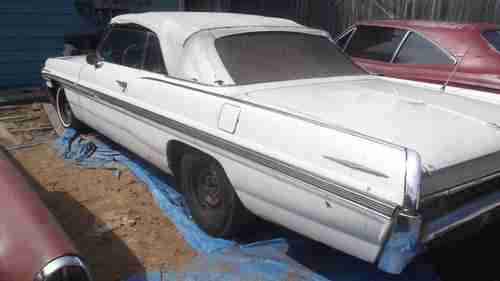 up for auction, 1962 pontiac bonneville convertible. a true survivor.car was put in storage in 1969. last licensed. true milage 57,000 miles only. very little surface rust. unbeliveable under carrage,no rust in floors or trunk. no pitting on chrome. has a 389-automatic, rare tri-color interior, super rare bucket seat,console car, with factory tach. interior not bad. has rare p.s. p.b. p.wirpers. power antina. tinted glass.power top. a real timecapsule. car will need a top and paint work, clean title. car runs strong, still has original fan belts, brakes will need to be bleed, but they do work. i dont have to tell you what these cars sell for, it even has its original jack. this is the first time the car is being offered to any one since 1969. buyer is to set up his own shipping, however if you need help finding someone, i may be at help to you with a transporter. any questions call- 773-619-1768 highest bidder wins, good luck.
