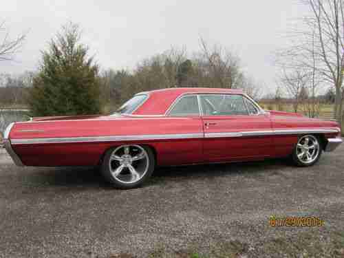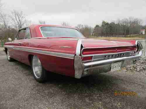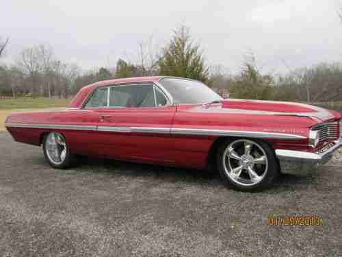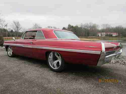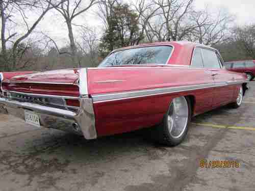 Up for auction is a 1962 pontiac bonneville pro street car.This car is powered by a super strong and dependable aluminum headed 400 V8 and a 3 speed automatic transmission.The paint on this car has been on it for several years and still shines and looks as if it were just done.The interior on the car is in great condition and the seat covers and door panels have been redone like it come from the factory.It does have a custom dash that has a clean and custom look.All the chrome and brightwork was all redone when the car was restored and is in super condition everywhere you look and to my knowledge has no flaws.The wheels are new coys 20x14 rears and 18x8 fronts with mickey thompson street tires.The motor compartment has really nice paint on the firewall and inner fenders and is detailed very nice.The hood is a custom made all metal 2" cowl.This is a really nice car that runs and drives great and has no mechanical or over heating problems.It has a super awesome sounding motor that can be driven anywhereIt .It has a stack of paper work and reciepts from the build that add up to more than than the cost that i am asking for the car.This pontiac is solid and is a crowd pleaser anywhere you go.If you have any questions please feel free to call any time.615-418-7057