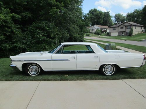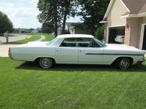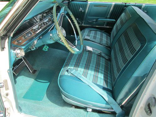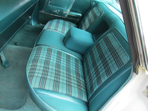 The car has 72,000 miles showing on the odometer. It is equipped with a 389 4 barrel carb, that was recently rebuilt and has an electric choke for easy starting. Car is equipped with air that isn't working currently and an AM radio that works well. The emergency trunk light works well and recoils. The frame and floors all appear to be solid. The trunk has all the panels including the floor mat and spare cover. The car has a spare and a jack. The paint is shiny and bright but there is some checking of the paint I have been told it had one repaint that is older. The stainless and chrome are all very good. The glass has no cracks or chips and side windows roll up and down as they should. The interior is a aqua marine color that has a plaid design. The seats are in excellent condition with no rips or tears or stains. The gauges are clear and working. The headliner is in excellent condition and the dash pad is excellent as well. Steering wheel is in excellent condition. It has seat belts only in the front of the car. The carpet is in excellent condition and there are two color coordinated floor mats for the front. The interior is like new and straight out of the 60's. Car starts, drives and runs well. The engine and engine compartment could be detailed but is very presentable the way it is. Tires have a lot of life left in them, and the full wheel hubcaps are in good shape. Car gets lots of looks going down the street. If you have any questions please email me or you may call 815-238-0796 between 9 and 9 central time. Shipping is the responsibility of the buyer, but I will do everything I can to help you out with it. The car can remain in indoor storage until you can coordinate pickup. If you have no feedback or negative feedback on ebay please call me before bidding. The car is also available for sale locally and I reserve the right to end the auction early should the car sell locally first.