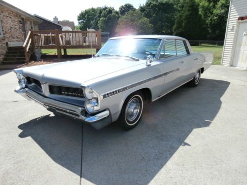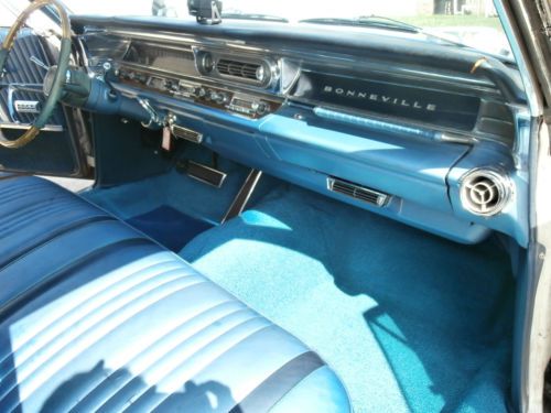 THIS BONNEVILLE WAS PURCHANCED BY IT'S SECOND OWNER IN 1982 IT'S SHOWED 39,213 MILES ON THE TITLE THEN THIS CAR HAS BEEN STORED FOR A FEW YEARS AND DOES NOT RUN AT THE PRESENT TIME BUT THIS ARE CURRENT PICTURES TAKEN 7-8-2014. THIS IS A MATCHING NUMBER 6.4L 389 CU. IN. V8 ENGINE BLOCK# 549880, HEADS# 543880, CARTER 4-BBL CARBURETOR, HYDRA-MATIC AUTOMATIC TRANSMISSION WITH 68,250 ORG. MILES, PAINT EXTERIOR IS SILVER IN COLOR WITH TWO TONE BLUE VINYL INTERIOR, CAR CAME FROM THE FACTORY WITH POWER SEATS, POWER WINDOWS, POWER STEERING, POWER BRAKES, AM RADIO, CLOCK, AIR CONDITIONING FACTORY LIGHT TINTED GLASS ALL STILL IN GREAT SHAPE. ONLY THE BODY HAS SOME RUST AREAS AS YOU CAN SEE IN PICS. THE FRAME, FLOOR AND TRUNK PANS ARE STILL SOLID. SOME OF THE BODY TRIM MOLDINGS DO SHOW THE NORMAL SIGNS OF WEATHER WEAR BUT ALL THE GLASS TRIM AND DOOR TRIM AND BUMPERS ARE ALL STILL IN GOOD SHAPE. STILL HAS THE ORIGINAL RIMS WITH PONTIAC MOTOR DIVISION HUBCAPS WITH COPPER P225-75R14'' STEEL BELTED RADIALS TIRES.