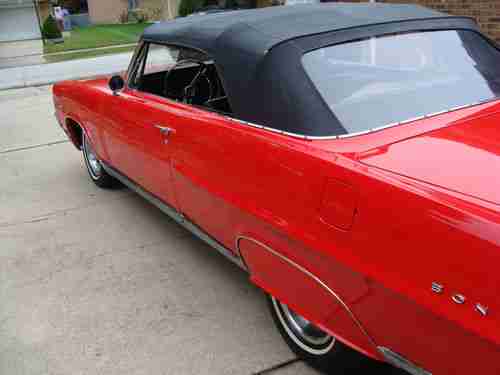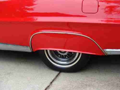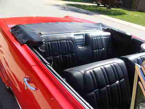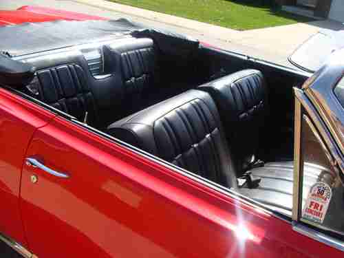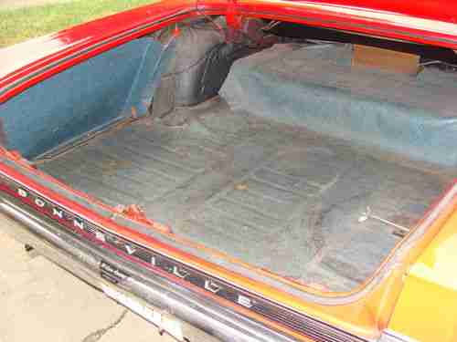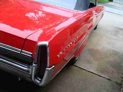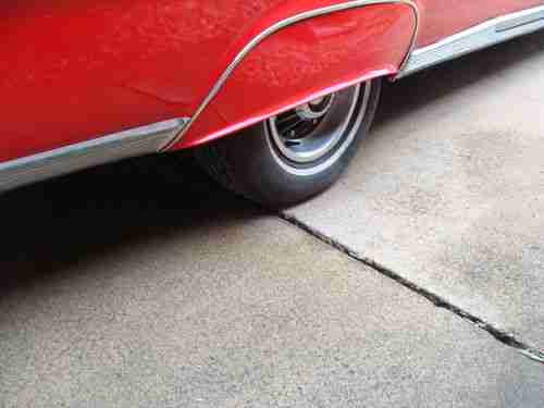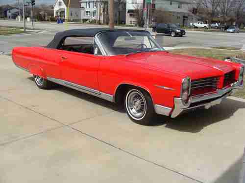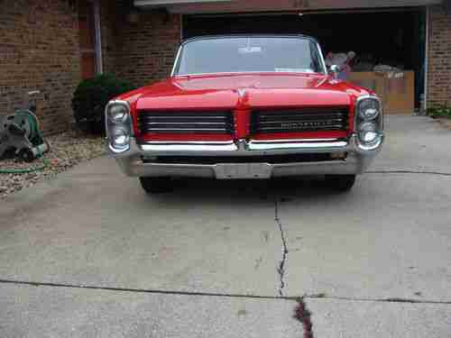1964 Pontiac Bonneville Convertible with 24,000 miles. It has the 389 cu. in engine with automatic transmission, power steering and power brakes. I think that the top is original too because it is anchored to the metal strip that goes across the top the same as the new one that I had back in 1964. There is a small worn spot on each side of the top of the convertible top ( as shown in pictures). This car starts and runs excellent. It has awsome power and will burn rubber on take off as it did in 1964. There are no floor patches that I could see. Interior is very nice. All glass is good. Windshield does have a small chip. The left fender was smashed when I got the car. It was replaced with a good solid one and the whole car was repainted in Porsche Red as it was when I got it. It is a very beautiful car.The space between the left fender and door needs a slight adjustment . I just got busy and never took it back to the shop. The padded dash has some cracks as shown in pictures.This car also has 8 lug wheels. Steering wheel is very nice. If you have any questions, please email them to me.