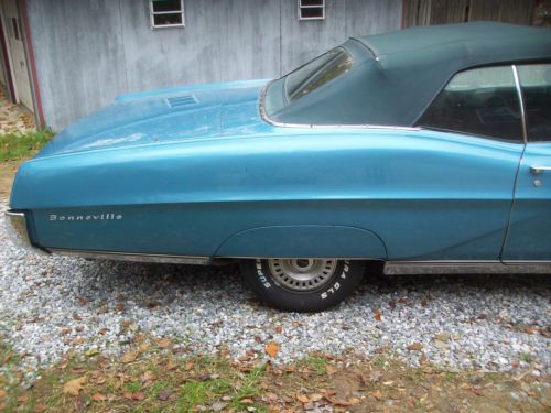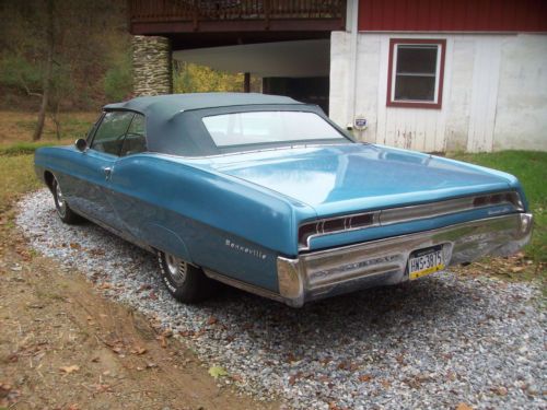 1967 Pontiac Bonneville Convertible, runs great, very reliable has a 400 cubic inch engine with automatic transmission. The rear was professionally rebuilt by a transmission shop, PS,PB, and original AC which works, has a nice AM/FM CD player. Mechanically it is in great shape, everything has been maintained and you could get in and drive anywhere, new top and nice paint has a few minor dings and chips but the body is in great shape no rust in the quarters, trunk or fenders there was one rust spot under the driver side back seat that has been repaired. All the chrome is in nice shape, Interior is black vinyl with no rips or tears, has a new carpet in it. The steering wheel was professionally restored so it is perfect, rest of dash is in great shape also, It has a new float in the gas tank, I had 4 brand new tires recently installed.