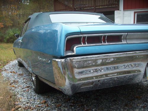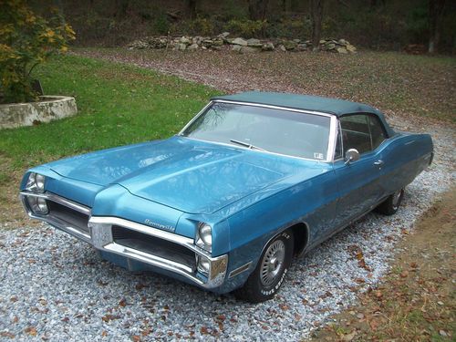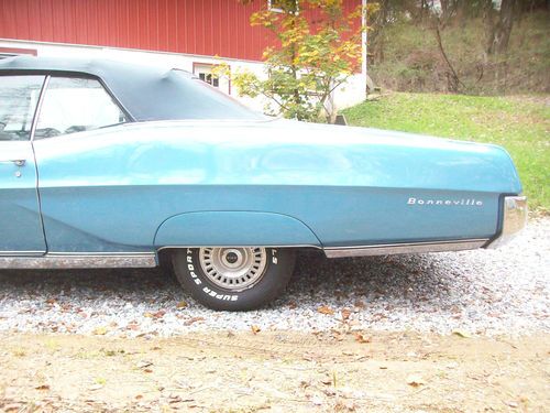 1967 Pontiac Bonneville Convertible, 400 engine, 400 transmission, Mechanically it is a good reliable car to just get in and drive it has a current Pennsylvania state vehicle inspection sticker on it. It has new lower ball joints, new alternator, 4 brand new tires, newly rebuilt gas tank float, it has a refurbished original steering wheel and the rear was recently rebuilt by a professional transmission shop. It has factory AC which works, remote mirror and a nice aftermarket AM/FM CD player. It was repainted about 8 or 9 years ago and still looks great but has some minor imperfections. There is a small amount of surface rust on each end of the rear bumper which can seen in the close up picture. The interior is original except for a new replacement carpet and is in good shape as can be seen in the photos. I have described the car as best as I can you are responsible for inspecting the car or asking any questions you may have to establish if you wish to buy it, it is being sold as is, there is no warranty. If you have any questions or would like to come see it you are welcome to give me a call at 610-430-8432