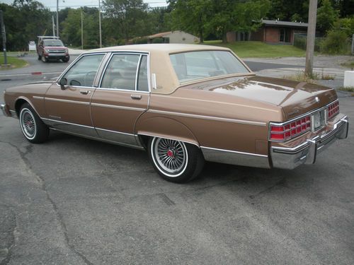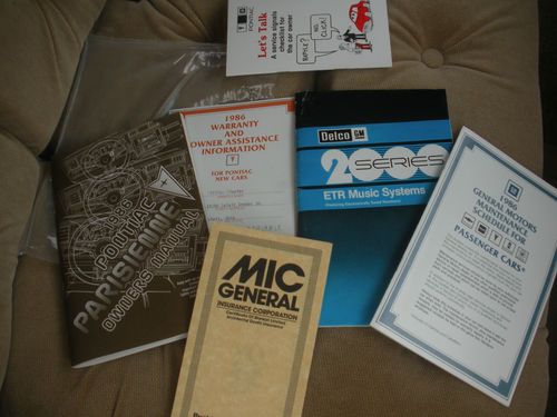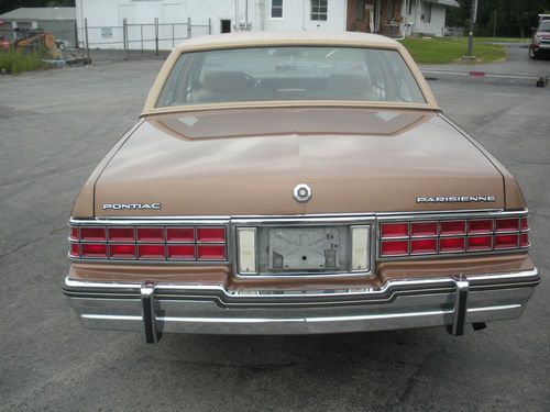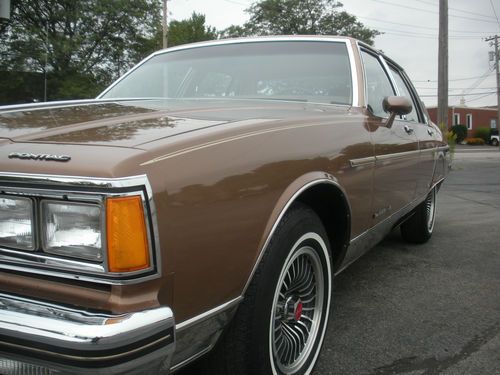 UP FOR SALE IS A VERY NICE ALL ORIGINAL 1986 PONTIAC PARISIENNE BROUGHAM WITH JUST 27000 ACTUAL MILES. IT IS ABSOLUTELY LOADED WITH A LONG LIST OF POWER OPTIONS. THE ENGINE IS THE 307 V-8 AND RUNS VERY SMOOTH AND QUIET. THE A/C BLOWS COLD AND ALL OPTIONS SEEM TO WORK AS SHOULD EXCEPT POWER ANTENNA. THE EXTERIOR AND INTERIOR ARE ALL ORIGINAL. THE INTERIOR IS PRETTY MUCH AS NEW. THE CHROME IS BEAUTIFUL AND THE PAINT SHINES LIKE NEW BUT THERE IS ONE SMALL CREASE ON PASSENGER LOWER BOTTOM OF DOOR AS WELL AS TWO SMALL RUST SPOTS UNDER CHROME AS PICTURED BUT I WOULD HATE TO REPAINT. I BELIEVE THE NEW OWNER WILL BE VERY SATISFIED WITH THE WHOLE CAR. PLEASE CALL ME AT 330-540-9843 WITH QUESTIONS OR TO VIEW IN PERSON, THANK YOU.