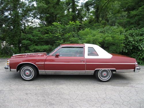 1979 Pontiac Bonneville Landau Coupe. Only 7k original miles and 100% original condition throughout! Highly equipped including padded landau top, air conditioning, cruise control, rear defroster, soft ray tinted glass, sport mirrors, power door locks, power windows, wire wheel covers. Fully documented with all Pontiac Historical Society paperwork, no disappointments. Please email or call Jason at 412-607-9757 with any questions.