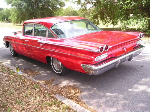 1960 Pontiac Catalina Sedan. 389 with automatic transmission. Chrome looks great. Good tires, carpet, upholstery, and headliner. New red paint. Engine & trunk detailed. No power - needs a little TLC - i.e. gas gauge needs repair, carb rebuild & just minor brake work. Fantastic entry level car - Ready for cruise nights! Call (863)-635-9008