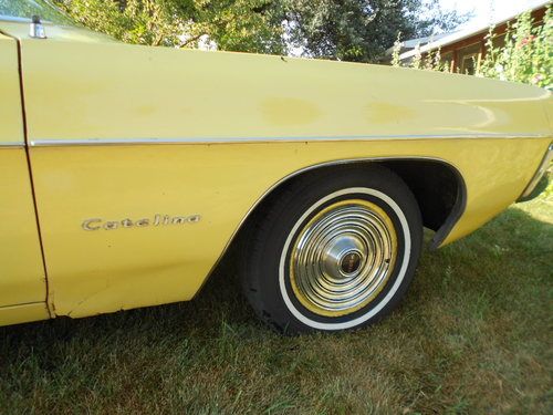 I have for sale a 1967 Pontiac Catalina convertible with 98,844 original miles. It has P/W, P/S, P/B, A/C, power top, brand new white wall tires. The car needs some work like new top vinyl. The car comes with a set of NOS hubcaps (pictured) and fender skirts. Has some rust issues around the rear wheel wells and in the right front quarter but easily repaired. This car is great driver quality and with a little work could make a great show car. Comes with a clean and clear title ready to go. The car runs and rides great and is very nice to drive. The hydraulic top motor was just rebuilt but needs new hydraulic lines for the top to operate. The front seats are period correct but do not match the interior color. It has a Pontiac 400 with 400 transmission. The car is mechanically perfect. I would have no problem taking it across country. Let me know if you have any questions.