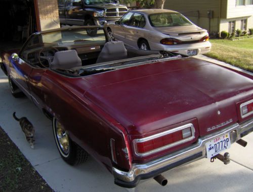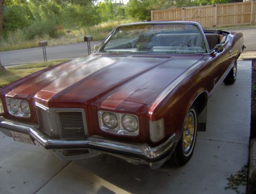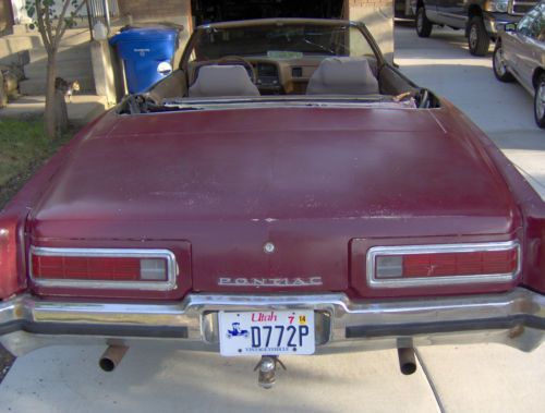 NO RESERVE, NO BUY IT NOW.1972 Pontiac Catalina convertible, runs drives very well. New 235R75/15 Big O radial tires, new mufflers, new front seat covers. Seats are out of a 1971 LeMans. Brown interior, black console (sorry about that, after I put bucket seats in I figured it needed a center console although it's still column shift. All I had was a black console). AM FM radio, crappy speakers. New front shock absorbers and stabilzer bushings. Ready to go cruising this summer. I believe the wheels are 1971 or 1972 Oldsmobile. The top bows are all there but fabric gone. The top motor gear drive is missing a gear, needs new drive cables. The top is gear driven not hydraulic. Gearing works. Not sure if top drive motor any good. All that stuff is available. It's a convertible so I didn't worry about a top, I just drive it top down all the time. Windshield cracked and intermittent wipers (some times they work, sometimes they don't). Heater switch was acting weird, I wired another switch under dash so heater motor would work. Clear Utah title in my name. Steve 801-450-8336 or 801-899-9486