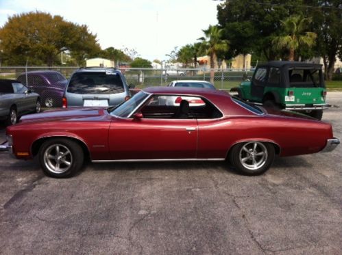 this car is very cool has nice body fair paint clean interior bucket seats console sporty original pontiac engine with 350 transmission dual exhaust nice stereo system newer vinyl top new tires and wheels sharp looking cruiser car just a nice ride very clean under the hood and underneath the car has power steering power brakes and cold a/c