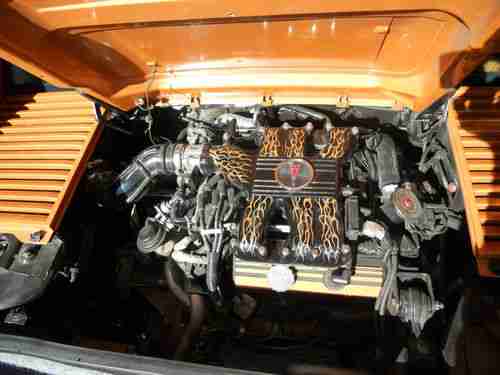 Custom body off paint, 1972 Corvette Orange Metallic/Black, custom Fiero logos under hood and trunk.